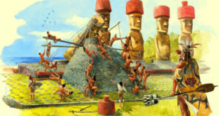 By analyzing the chemical makeup of toki, tools that were used by Easter Island’s inhabitants to create the giant moai statues, Field Museum researcher Laure Dussubieux and colleagues found evidence of a very complex society where the people shared information and collaborated. Ancient Easter Islanders. Image credit: © Santiago Caruso. …