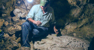 An international group of archaeologists has found a carved limestone altar at the Maya site of La Corona, located in jungle forest of the Petén in Guatemala. Archaeologist Dr. Marcello Canuto sits beside the ancient Maya altar he and his colleagues discovered in the jungles of northern Guatemala. Image credit: …