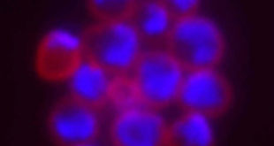 The similar clustering of DNA in the chromosomes of humans and Archaea is significant because certain genes activate or deactivate based upon how they’re folded, according to a paper published in the journal Cell. Sulfolobus sp.: each cell is outlined in red; the DNA is stained blue. Image credit: Stephen …