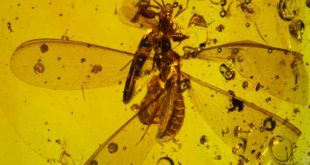 An international team of paleontologists has announced the discovery of an ancient interaction preserved in a 16-million-year-old (Miocene period) piece of amber from the Dominican Republic: a winged termite and an ant along with 25 springtails (one of the oldest terrestrial arthropod lineages living today) attached or in close proximity …