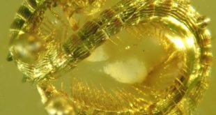 A team of paleontologists from Bulgaria and Germany has found the surprisingly unusual and perfectly preserved millipede in 99-million-year-old amber from Myanmar (formerly Burma). Burmanopetalum inexpectatum. Image credit: Leif Moritz. Millipedes are a highly diverse but also a largely understudied group of arthropods with over 11,000 described species. The actual …