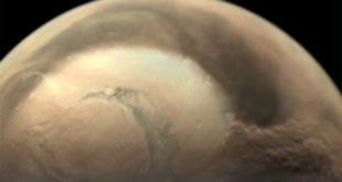 ESA’s Mars Express orbiter has observed several local and regional dust storms brewing at the north pole of the Red Planet. A dust storm underway at the edge of the north polar ice cap of Mars. The image was taken by Mars Express’ Visual Monitoring Camera on May 29, 2019. …