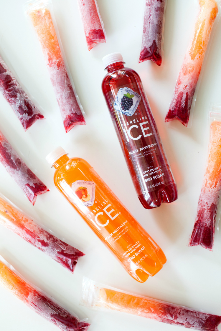 I’m thinking frozen mango mixed with Sparkling Ice Orange Mango and frozen pineapple with Sparkling Ice Coconut Pineapple would be a killer tropical ice pop combination. Don’t you think?