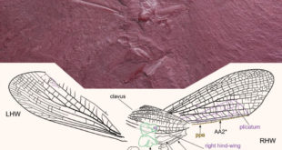 Paleontologists have identified a new fossil genus and species of primitive praying mantis from fore- and hind-wing imprints discovered in Labrador, Canada. Labradormantis guilbaulti. Image credit: Demers-Potvin et al., doi: 10.1111/syen.12457. Paleontologists know that most modern praying mantises, with their characteristic grasping forelegs, look very different from their oldest fossil …