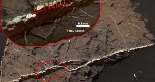 Boron, a metalloid chemical element with properties intermediate between those of carbon and aluminum, has been identified for the first time on the Martian surface, indicating the potential for habitable groundwater in the ancient past. The highest concentration of boron measured on Mars is in this mineral vein, called ‘Catabola,’ …