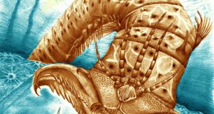 A prehistoric monster worm that terrorized the Devonian seas some 400 million years ago has been identified by an international team of paleontologists from the University of Bristol, Lund University and the Royal Ontario Museum. This is an artistic reconstruction showing Websteroprion armstrongi attacking a fish in the Devonian sea. …