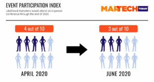 Prospect for in-person conferences fades for 2020 The likelihood that marketers will attend an in-person conference or event before the end of 2020 continues to fade, according to the latest data from MarTech Today’s Event Participation Index. In fact, marketers on average gave the likelihood that they would attend an …