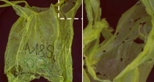 An international team of researchers from Spain and the United Kingdom has found that a caterpillar of the greater wax moth (Galleria mellonella) — commonly known as a wax worm — has the ability to biodegrade polyethylene. Polyethylene degradation by wax worms. Left: plastic bag after exposure to about 100 …