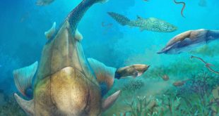 The discovery of a 423-million-year-old fossil in China has shed light on the evolution of the tripartite (three-part) jaw, revealing a previously unknown stage of jaw evolution in placoderms, an extinct group of early fishes. Life reconstruction of Qilinyu along with Guiyu and Entelognathus in Silurian waters. Image credit: Dinghua …